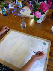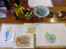 テーマを教室で決める場合もありますが、今回は私が選んだテーマで制作。次回はリクエストをいただきました。それぞれの課題をよく観察して描いています。