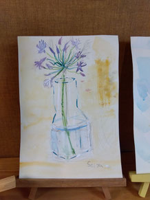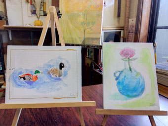 今回はF0号キャンバスに短なものをアクリルで水彩画的に描くでした。